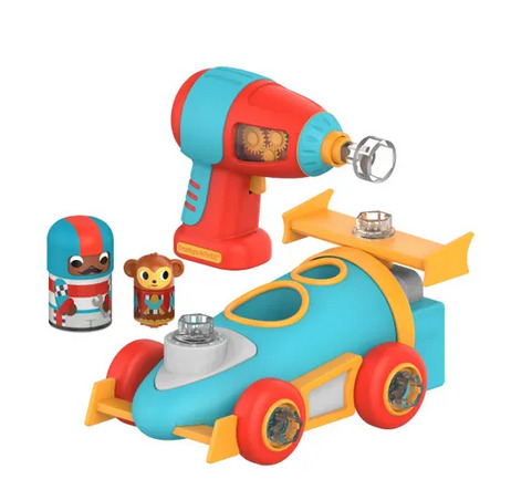Este set permite a los niños construir su propio automóvil de carreras utilizando herramientas reales adaptadas a su edad, fomentando la exploración activa y el aprendizaje práctico. Su diseño robusto y colorido lo convierte en una opción ideal para entornos educativos, espacios de juego en casa o actividades grupales que promuevan el trabajo colaborativo.
