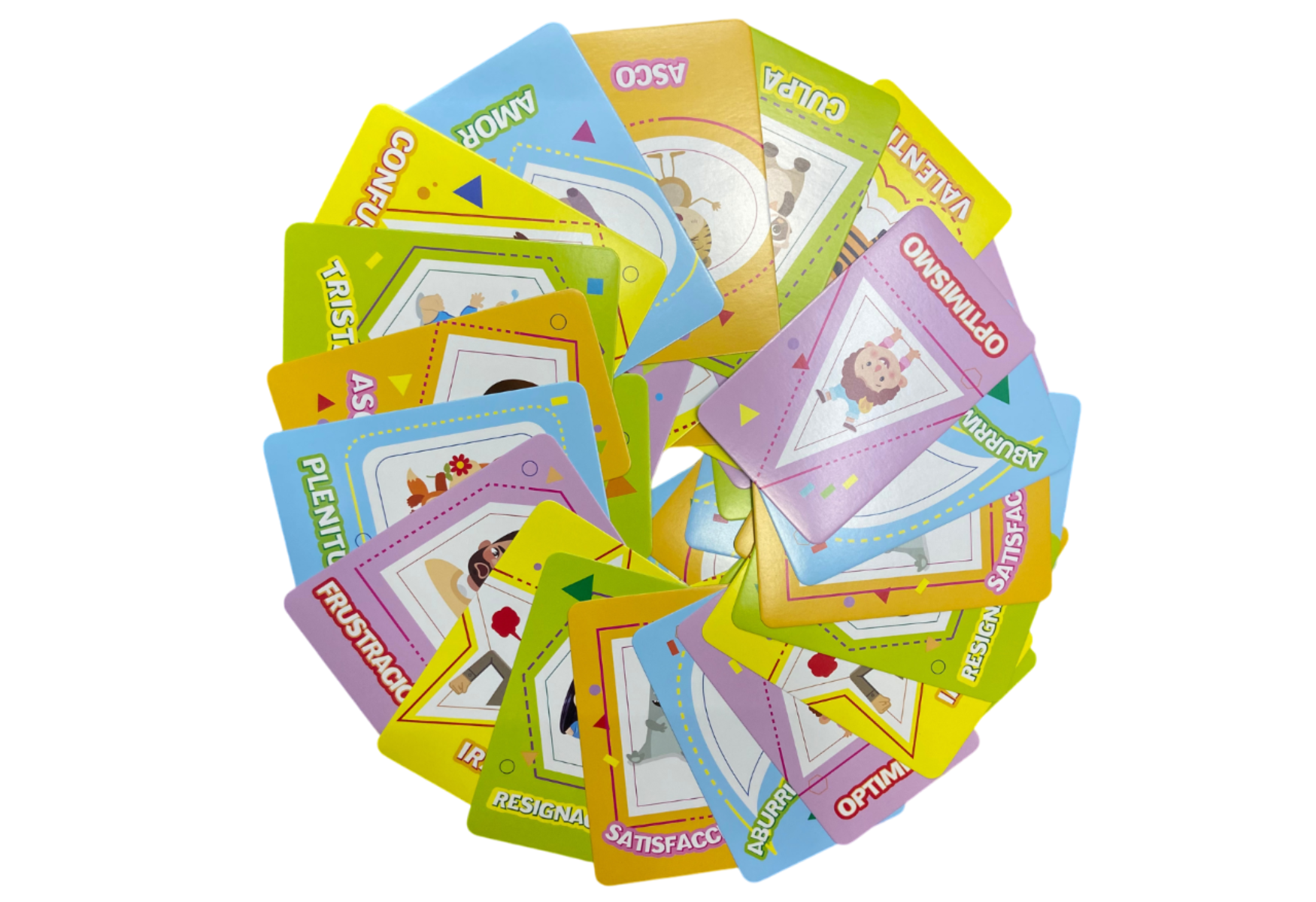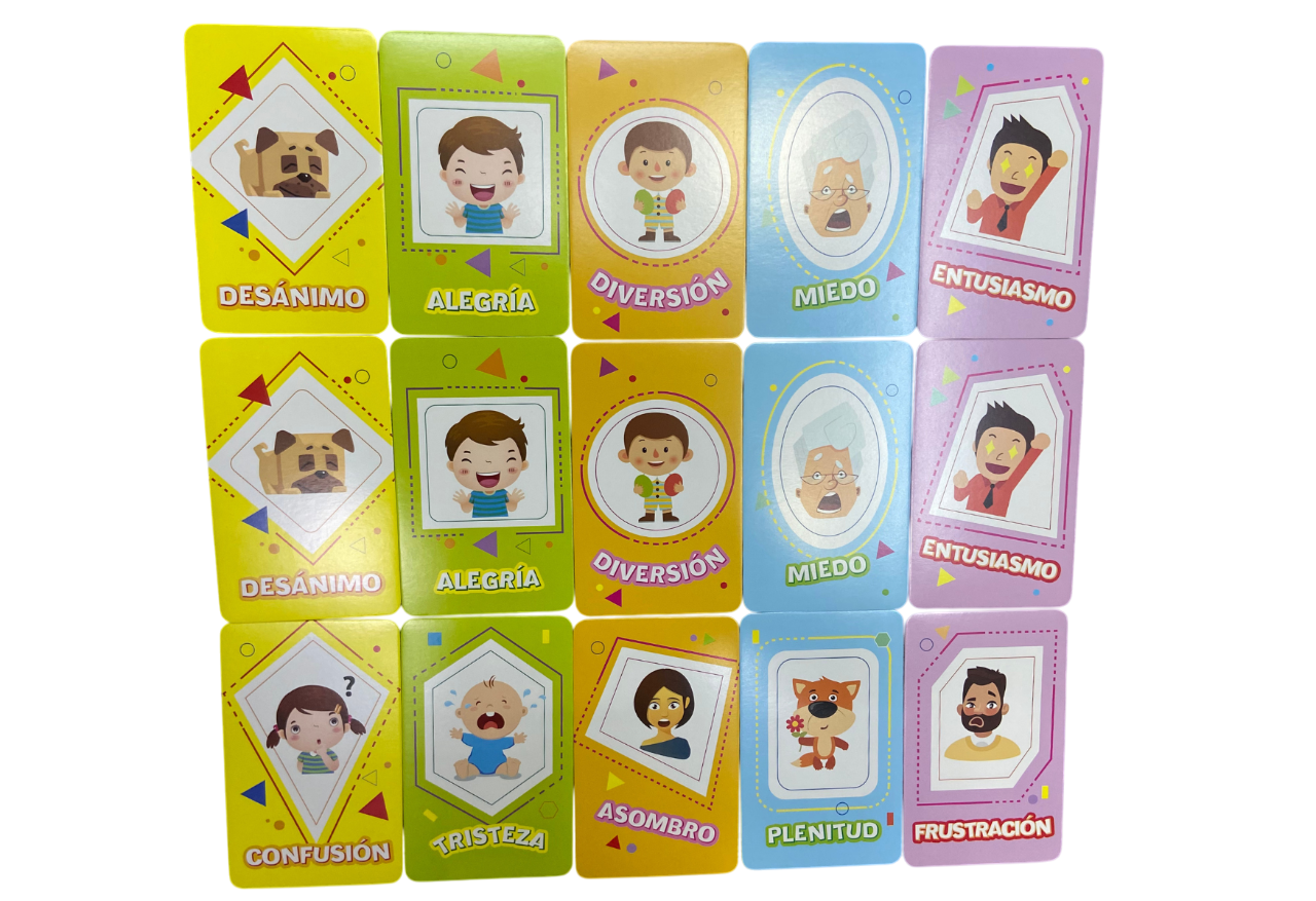 Es un juego de cartas educativo diseñado para ayudar a los niños a identificar, comprender y expresar diferentes emociones de manera divertida. A través de cartas que representan diversas emociones (como alegría, tristeza, enojo, miedo, sorpresa, entre otras), los jugadores participan en actividades que fomentan la empatía, el autoconocimiento y la comunicación emocional