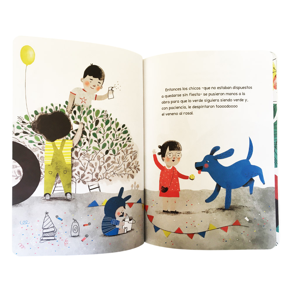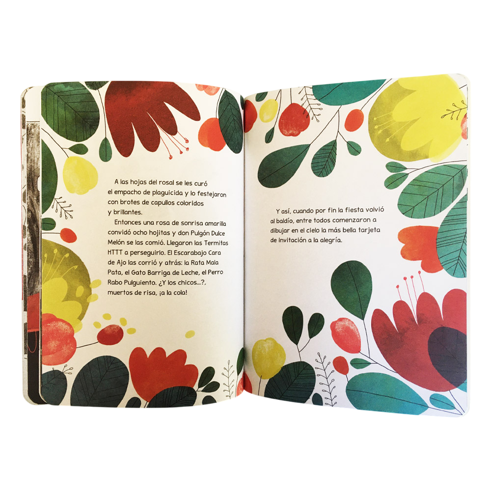 Si hay fiesta en el baldío, lo mejor es que no falte nadie. Ni el perro con sus pulgas, ni el gato, ni la rata. El escarabajo, las termitas y el pulgón también están invitados. Y los chicos, ¡claro! ¡Qué buena idea! Pero hasta las buenas ideas corren peligro “si el verde deja de ser verde” y empieza a oler a veneno pegajoso… Una historia de amistad y de esfuerzo compartido para recuperar el verdor y la esperanza, la alegría de estar juntos en la fiesta de la vida, donde cada quien ocupa su lugar.