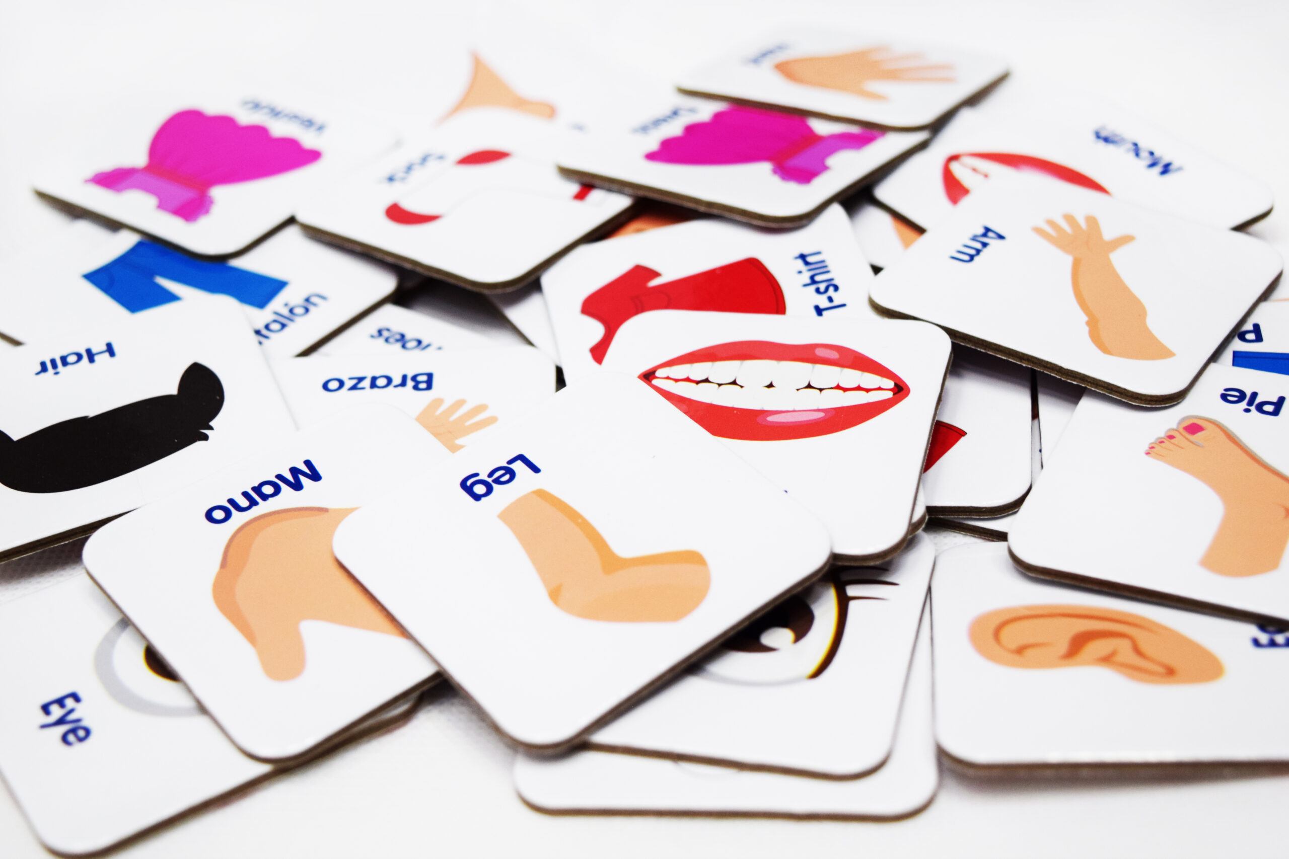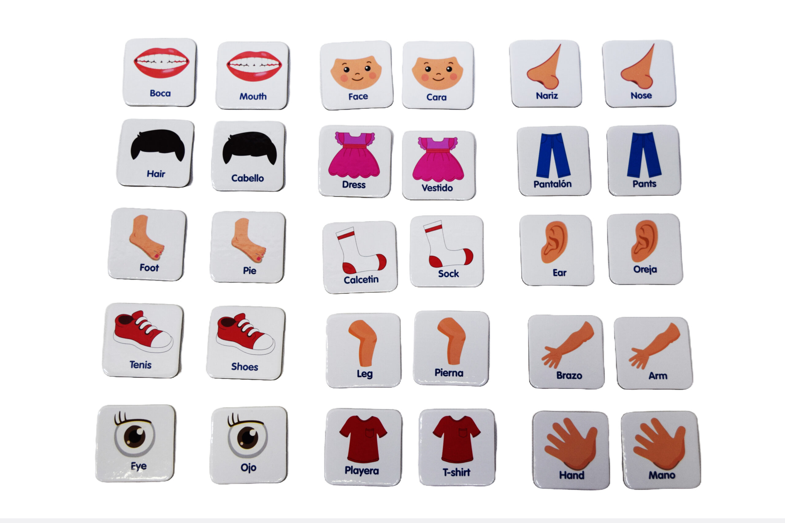 Memoria bilingue con imagenes y palabras inglés – español , con vocabulario de cuerpo y vestuario básico. video muestra