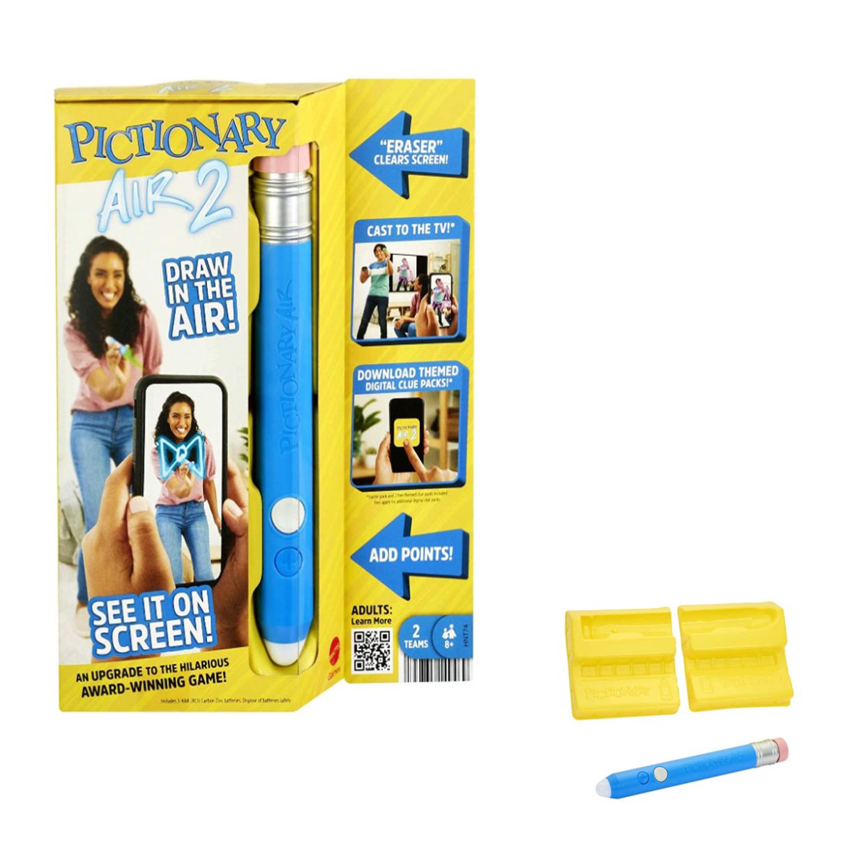 Juego para dibujar en el aire con el lapiz mágico que contiene, a la par que realizas el trazo puedes ver las figuras en la pantalla, tambien puedes conectar a la tv. Con la app puedes descargar paquetes digitales tématicos,  se dividen en dos equipos y el que logre adivinar más figuras gana
